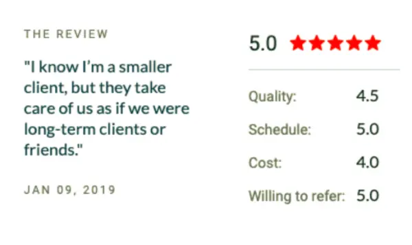 While the platform has yet to launch, the company has been consistently pleased with our work. We take deadlines and details seriously, a fact that our client noted when they gave us 5-star ratings in every category.